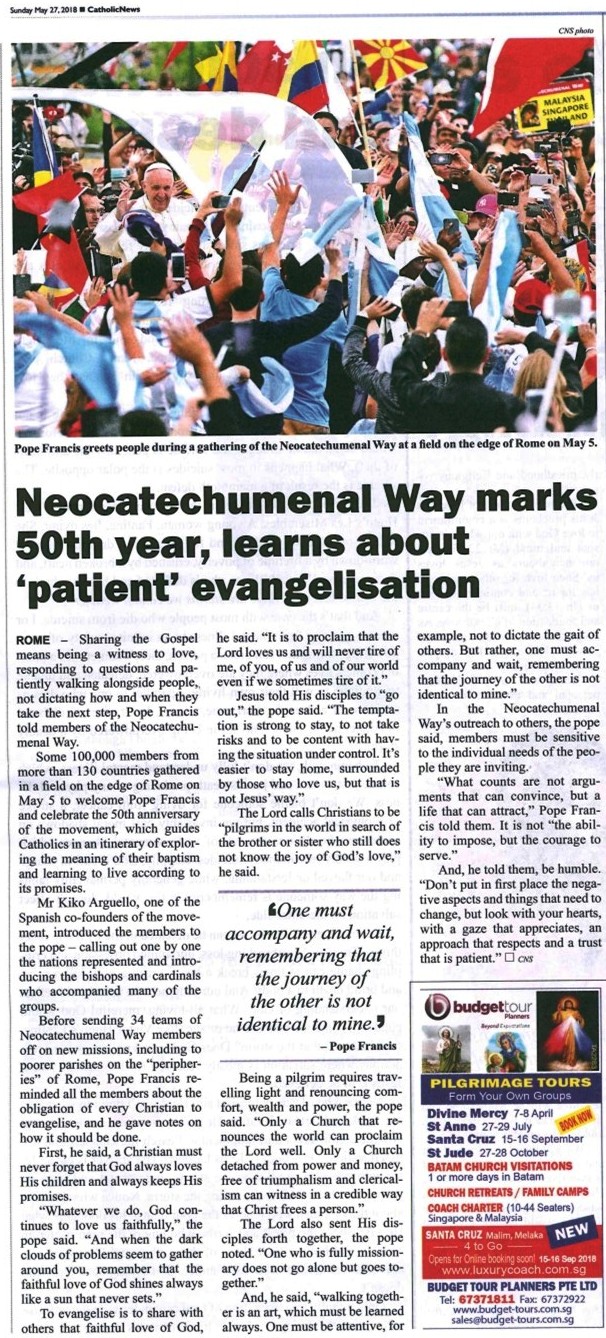 | Neocatechumenal Way members share experience of meeting Pope Francis on 5th May 2018 @ Tor Vergata, Rome. | ![]() |